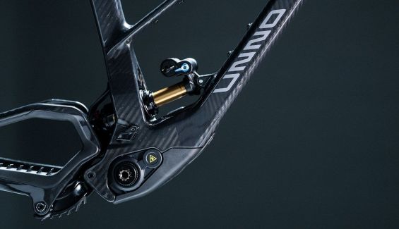 El cuadro, también fabricado en carbono T700/T1100, ofrece 160 mm de recorrido trasero con un amortiguador Fox Float X2 Factory (230×65 mm) y compatibilidad con configuraciones de muelle helicoidal. Su sistema de suspensión Virtual Pivot UNNO emplea una curva de progresividad variable —30% más alta al inicio para sensibilidad en pequeños impactos y 70% más baja para estabilidad y soporte—, junto con dos configuraciones de SAG (30% estándar y 35% para uso agresivo).